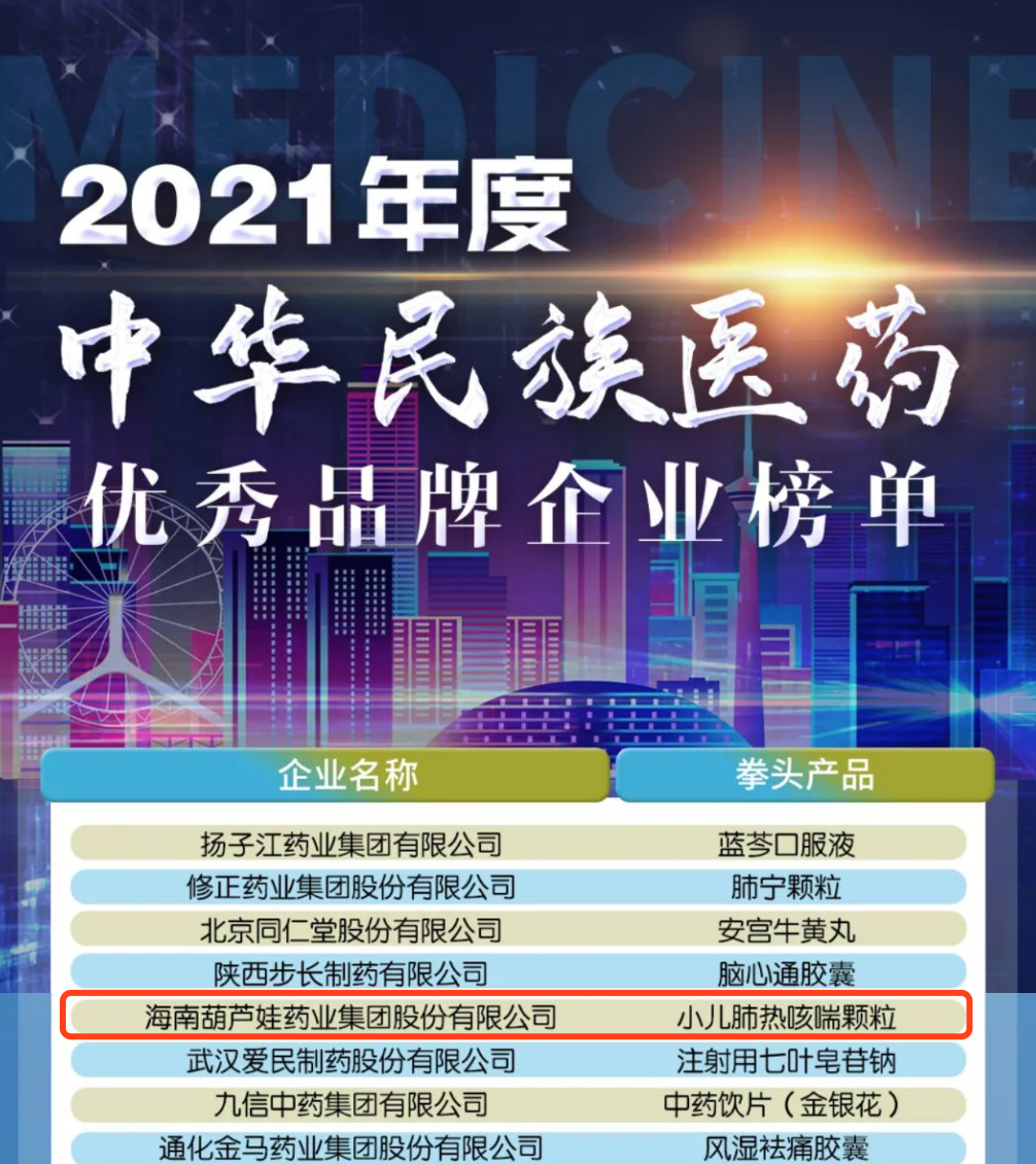 12月29日,全国工商联医药业商会发布了“2021年度中华民族医药优秀品牌企业榜单”,南宫28药业集团凭借黄金单品小儿肺热咳喘颗粒(4克)实力登榜。